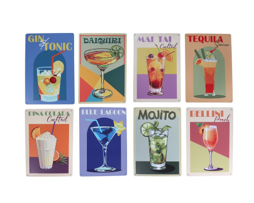 Wandbord Cocktails metaal 20x30x0,02cm 8 assorti