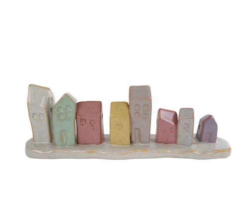 Sculptuur Huisjes 26,5x6x6cm creme/kleur aardewer assorti