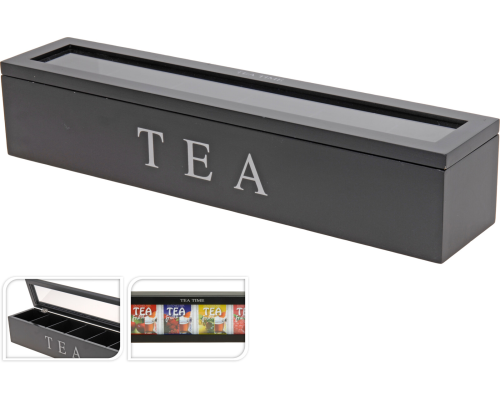 Theedoos zwart 43x90x87cm 6-vaks