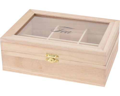 Theedoos Paulowina 21x16x7,5cm hout 6-vaks