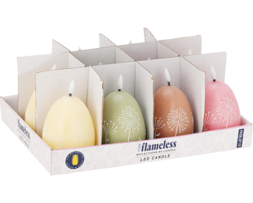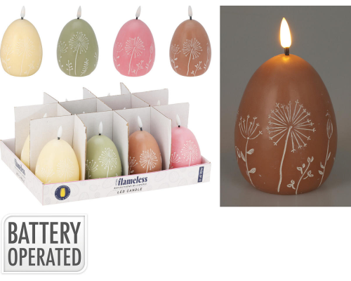 LED Kaars Paasei met bloem dessin assorti