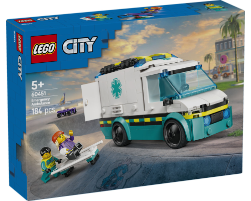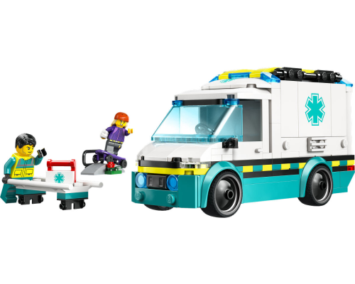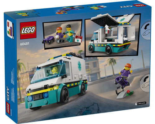 Verwen je kleine held met deze LEGO City Ambulance inclusief brancard en medische hulpmiddelen, plus 2 minifiguren voor rollenspellen.