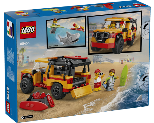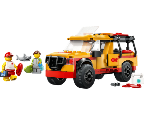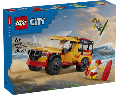Kinderen genieten van avonturen aan de kust met de LEGO City Strandwacht reddingstruck bouwset, compleet met 2 minifiguren en een haai.