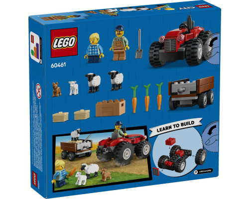 Kinderen beleven leuke avonturen op het platteland met deze boerderijbouwset met een rode tractor, 2 minifiguren, een puppy en 2 schapen en een lam.