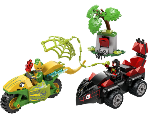 LEGO Spidey Spin en Electro achtervolging met dinovoertuigen