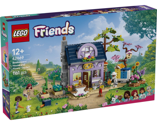 Deze Imkershuis en bloementuin set bevat 4 LEGO Friends personages, een kattenfiguur en een konijnenfiguur, plus een heleboel accessoires.