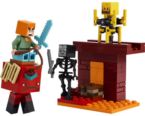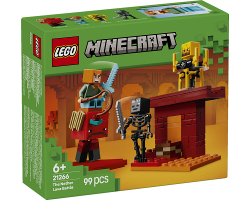 Dit snel te bouwen speelgoed voor Minecraft spelers speelt zich af in het helrode bos uit de game en bevat 4 Minecraft figuren en een lavalawine.