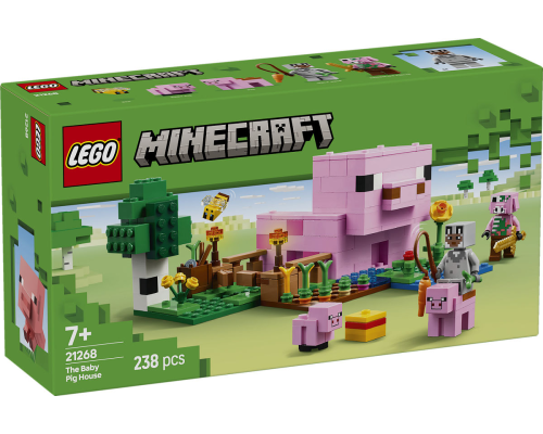 LEGO Minecraft Het huis van het biggetje zit vol plezier: bouw een huis, zorg voor dieren, verbouw groenten en neem het op tegen een Piglin-zombie!