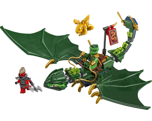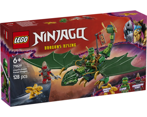 Een kleine LEGO NINJAGO Lloyds groene bosdraak set boordevol actie voor kinderen met 2 minifiguren en 2 draken voor spannende ninjarollenspellen.