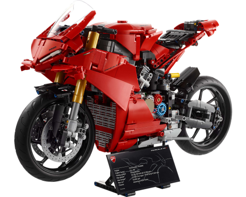 Dit is een geweldig motorcadeau voor Ducati fans! Bouw een gedetailleerde replica van de stijlvolle Ducati Panigale V4 S inclusief displaystandaard.