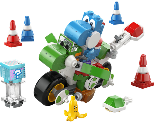 Rijd met de Yoshi-crosser en ontwijk obstakels met deze bouwbare Mario Kart™ speelset – een leuk Nintendo verjaardagscadeau voor gamers.