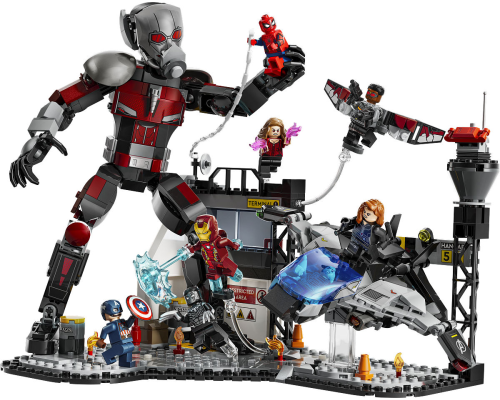 De set LEGO Marvel Captain America: Civil War actiescène brengt de strijd op de luchthaven uit de spannende Marvel film tot leven.