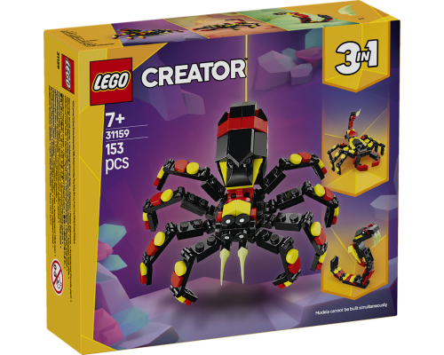 Dierenliefhebbers kunnen fantasierijk spelen met deze LEGO Creator 3in1 Wilde dieren: spannende spin en hem ombouwen tot een schorpioen of slang.