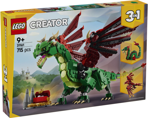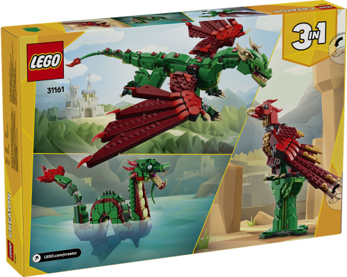 Kinderen genieten van fantasierijke actie met deze LEGO Creator 3in1 Middeleeuwse draak, die kan worden omgebouwd tot een zeeslang of een feniks.
