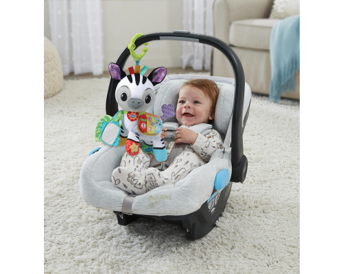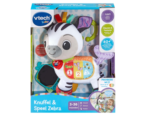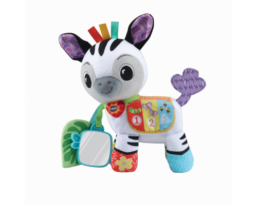 Deze lieve zebra is dol op knuffelen en bevat verschillende texturen die de tastzin stimuleren. Druk op de toetsen en schud de zebra om vrolijke reacties te horen en spelenderwijs kennis te maken met cijfers, tellen en kleuren. Het spiegeltje draagt bij a
