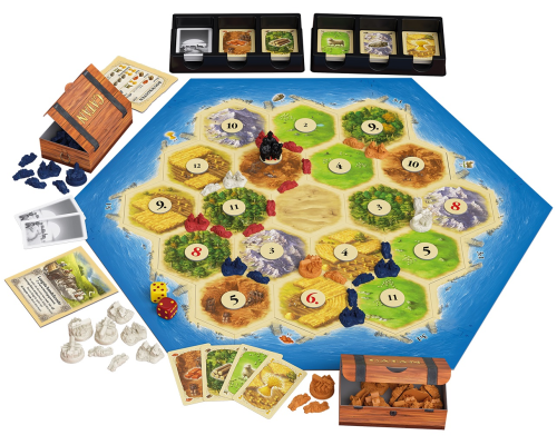 Interactief bordspel voor het hele gezin. Dit vlotte handelsspel is al een paar decennia hét gezicht van de nieuwe generatie bordspellen en werd in 2000 tot Speelgoed van het Jaar gekozen. Bouw dorpen, straten en steden om je over het eiland Catan te vers