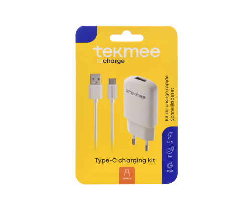 Tekmee thuislader 2.0A set USB / USB-C 1m