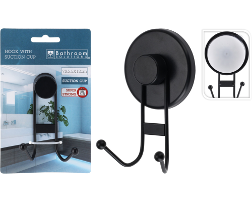 BS Badkamer haak met zuignap 70x55x120mm - zwart