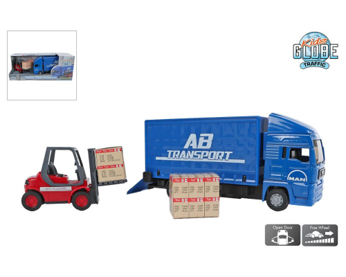 Kids Globe MAN vrachtwagen 17cm met vorkheftruck 10cm