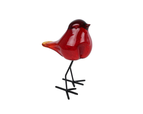 Sculptuur Bird op voet rood glas 11,5x8,5x15,5cm