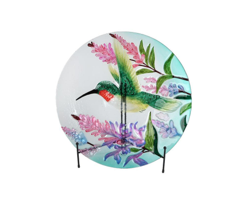 Schaal Kolibri m/standaard groen/rose glas 46x46x7cm