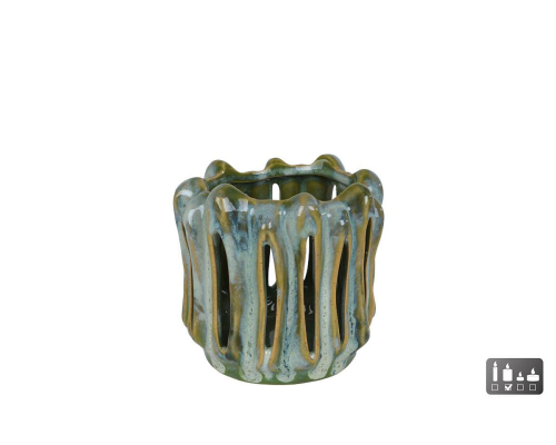 Windlicht Richard S groen/wit aardew 10x10x10cm