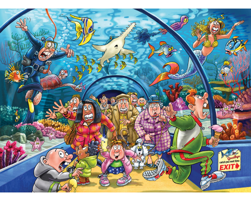 Sluit je aan bij de menigte en ervaar het leven onder de zee in het aquarium. Met allerlei vreemde en prachtige soorten om van dichtbij te zien, is het een magisch avontuur voor zowel volwassenen als kinderen. In de oceaantunnel kunnen oma en opa Wasgij l