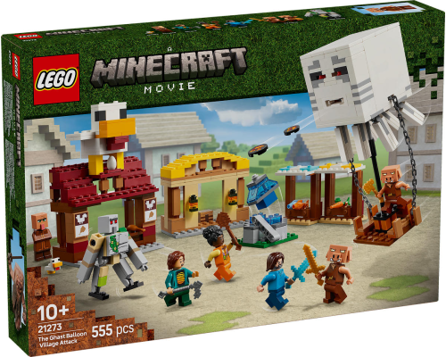 De Ghast-ballon aanval op het dorp is een LEGO Minecraft speelgoedset met mobs en actie uit de Minecraft film.