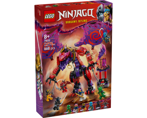 Speel de actie uit seizoen 3 van de tv-serie NINJAGO De Drakenstrijd na met de LEGO NINJAGO Bliksemtand Draak van Chaos speelset met 6 minifiguren.