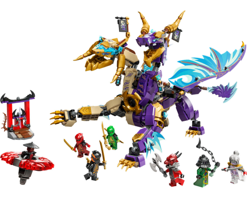 Fans spelen scènes na uit seizoen 3 van de tv-serie NINJAGO De Drakenstrijd met de LEGO NINJAGO Boogdraak van Concentratie set met 8 minifiguren.