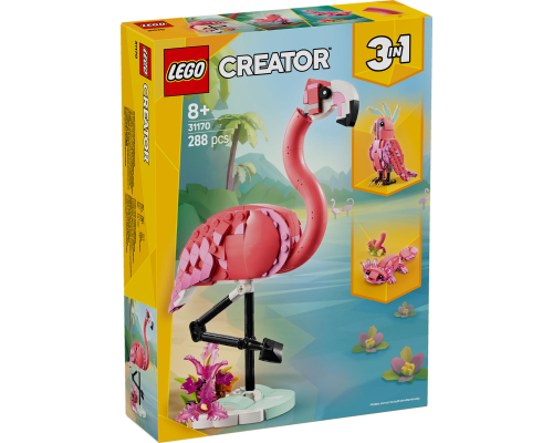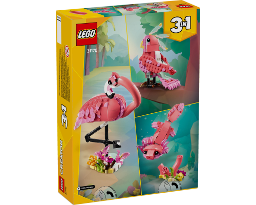 Dierenfans genieten van een leuke bouwervaring met deze LEGO Creator 3in1 Wilde dieren: roze flamingo en bouwen hem om tot een kaketoe of axolotl.