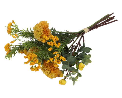 Countryfield Kunstbloem Dahlia Pompon Boeket geel 33cm
