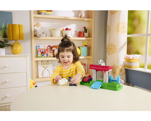 Peuters en kleuters kunnen urenlang verhalen verzinnen en naspelen met de Little People speelset Geitenweide: Voeren en Spelen van Fisher-Price. Deze schattige speelset met boerderijthema heeft een deur die open en dicht kan, waardoor de dieren naar binnen en naar buiten kunnen, een stoere wip om op te spelen, 2 vriendelijke geitjes en een zuigfles waarmee kinderen de geitjes kunnen 'voeren'. Kinderen vinden het geweldig om gekke verhalen te bedenken met hun lieve geitenvriendjes! Bekijk ook de andere Little People boerderijdieren en speelsets voor nog meer peutervriendelijk fantasiespel. (Andere speeltjes zijn apart verkrijgbaar en niet overal leverbaar.) Kleuren en versieringen kunnen variëren.