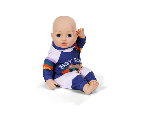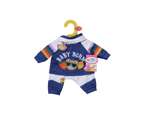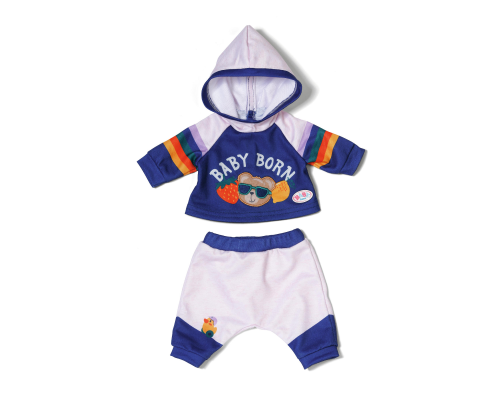 BABY born is dol op spelen en dit joggingpak is er de perfecte outfit voor! Deze superleuke, tweedelige blauwe set bestaat uit een broek met Berta de Eend en een hoodie met een coole beer erop.