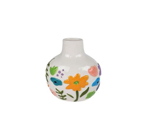Vaas Fleur S wit/multicolor aardew 12,5x8,5x13,5cm