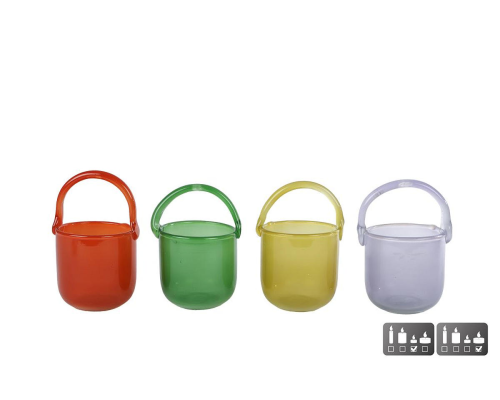 Theelichthouder met hengsel Zia glas assorti 8x10x14,5cm