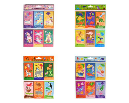 Stickerboekjes set 6 stuks a 75 stickers assorti