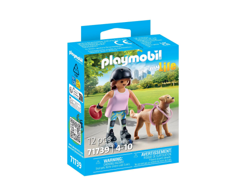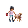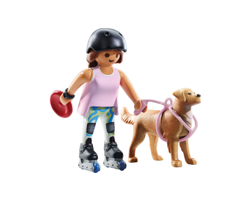 De inline skater speelt frisbee met haar hond. Beleef de wereld van onze trouwe viervoeters en ontdek je favoriete honden.