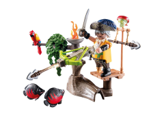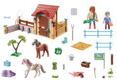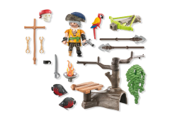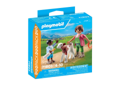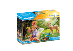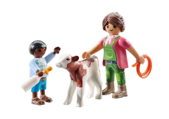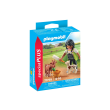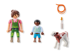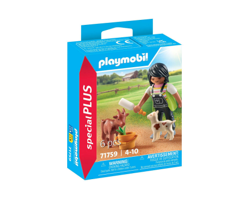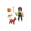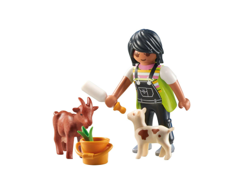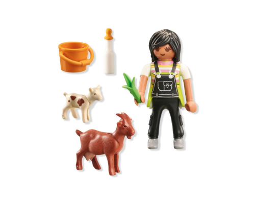 PLAYMOBIL Special Plus Vrouw met geiten. De boer voedt de babygeit met een fles terwijl moedergeit van haar maaltijd geniet in de emmer.