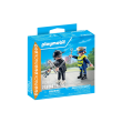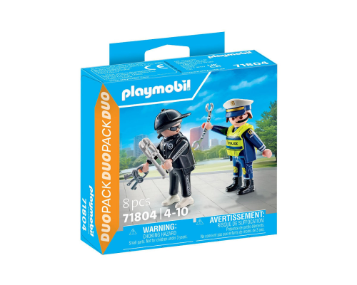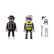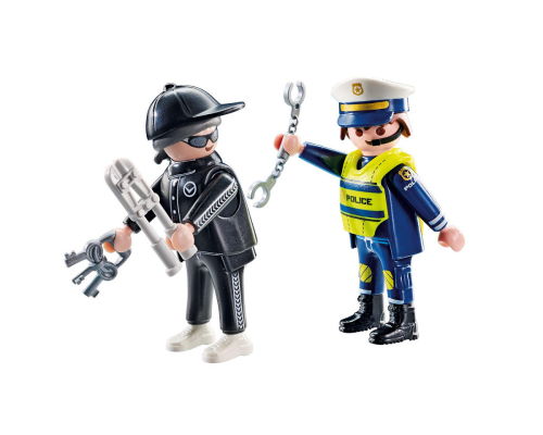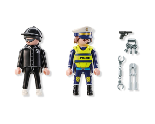 PLAYMOBIL DuoPack politieagent en overvaller. De politieagent met zijn pistool en handboeien vangt de crimineel net op tijd.