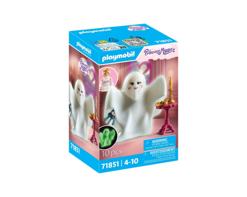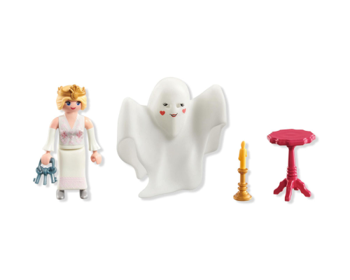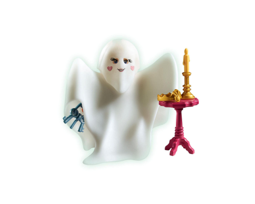 Het lieve kasteelspook van het prinsessenkasteel is eigenlijk een prinses die de sleutel van de schatkamer bewaakt en graag haar koninklijke vrienden verrast met streken. Haar spookkostuum gloeit in het donker.