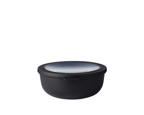 Mepal Cirqula multikom 1250 ml in de kleur Nordic black. Deze zwarte schaal met een inhoud van 1250 ml is perfect voor het bewaren of meenemen van grote porties soep, vlees of maaltijdsalades.