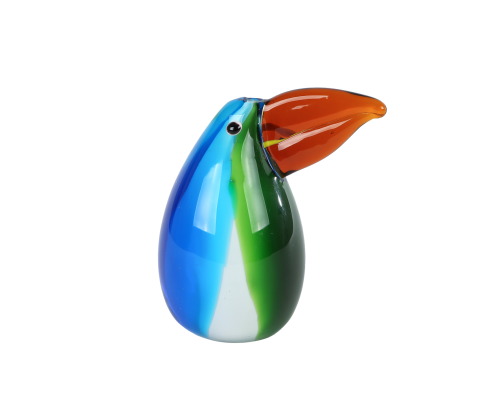 Sculptuur Toekan blauw/groen glas 11,5x8x13cm