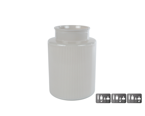 Vaas/windlicht Niamh L off-white glas 15x15x21cm