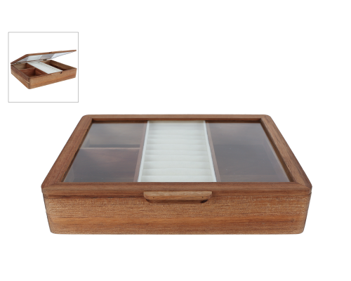 Sieradendoos Jet naturel acacia 19x19x22cm