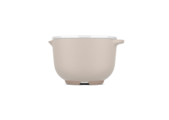 De beslagkom met spatdeksel heeft een strak ontwerp, een antislipring voor stabiliteit en een handige schenktuit. Perfect voor beslag, deeg of sauzen. Gemaakt van duurzaam materiaal, vaatwasser- en magnetronbestendig.