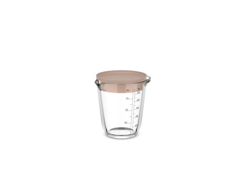 De maatbeker met deksel is ideaal voor nauwkeurig afmeten van vloeistoffen en ingrediënten. Gemaakt van hittebestendig glas.