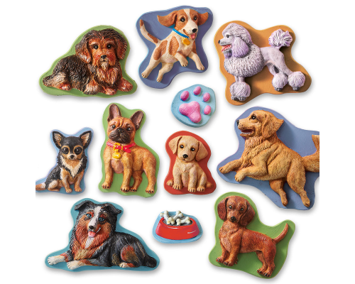 De set bevat een gietmal voor het gieten van de 9 meest populaire honden en 2 accessoires met gips._x00D_