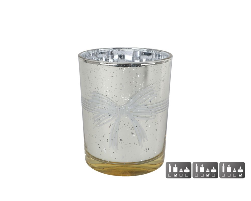 Theelichthouder Strik M goud glas 10x10x12,5cm
