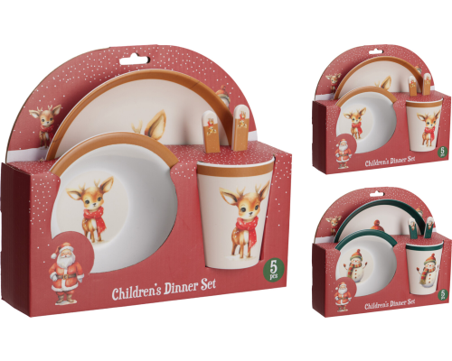 Kinder Serviesset Melamine Kerst 5-delig 3 assorti